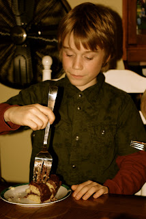 Cole's Nanny & Papa came down to visit for the night last night to be with Cole in celebrating his birthday, a little earlier than his actual birthday but they are busy over the next few weekends. We had French Onion soup for starters, at Cole's request, it's his favorite appetizer. Followed by Rainbow Trout and baked Potatoes :) MMmmm, sometimes I surprise myself :)